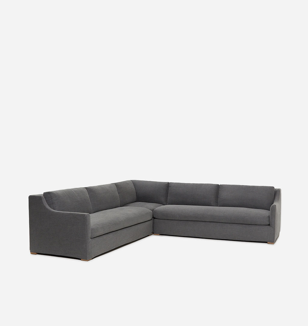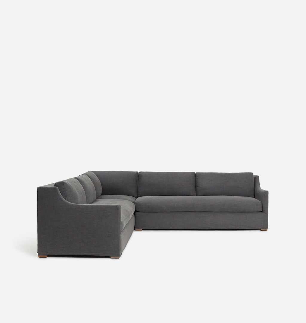 A variation on our classic slipcovered sofa, the three-piece Carpenter Corner Sectional is both tailored and refined. Featuring plush cushions and a fully removable slipcover, comfort meets style with its high seat-back and beautifully sloped arms. Offering an elevated yet relaxed look, this sectional is the foundation every living space needs. Explore more from the Carpenter Collection.