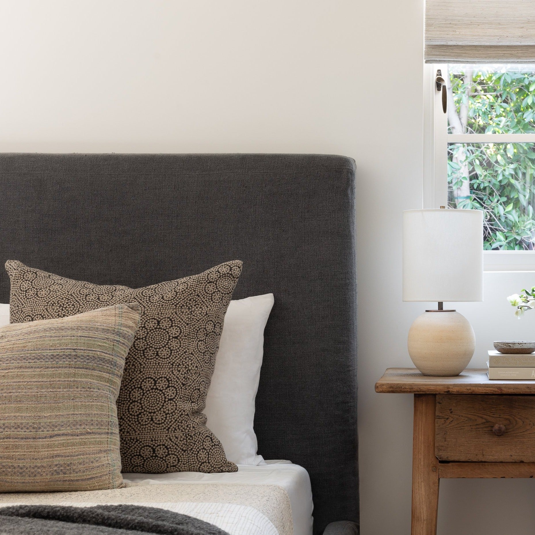 The Latigo Bed is a clean-lined slipcovered platform bed with a quintessential California look and feel. With a structured, modern headboard this bed is sure to elevate any space. This style is also available with a footboard.