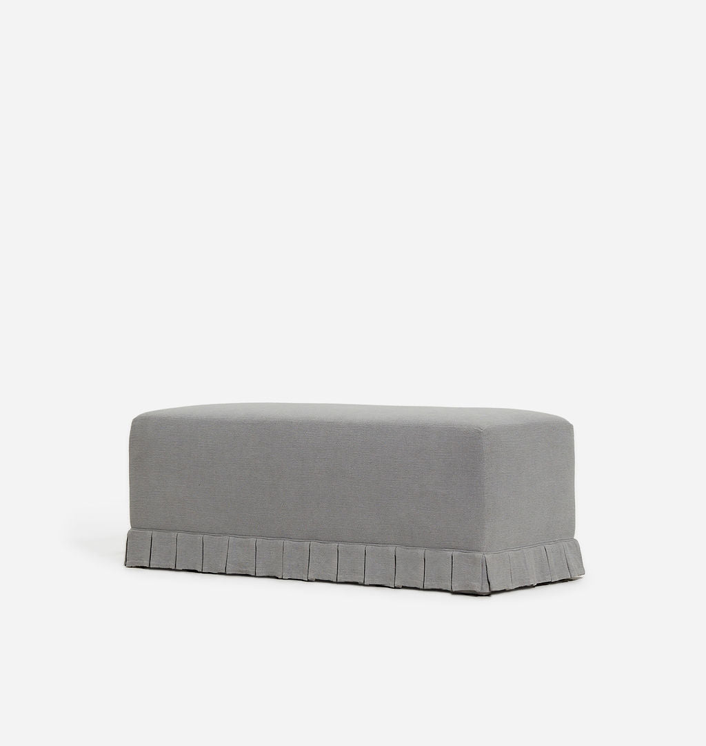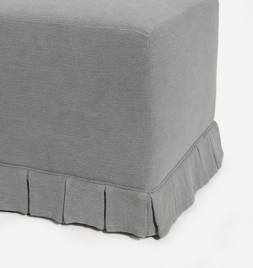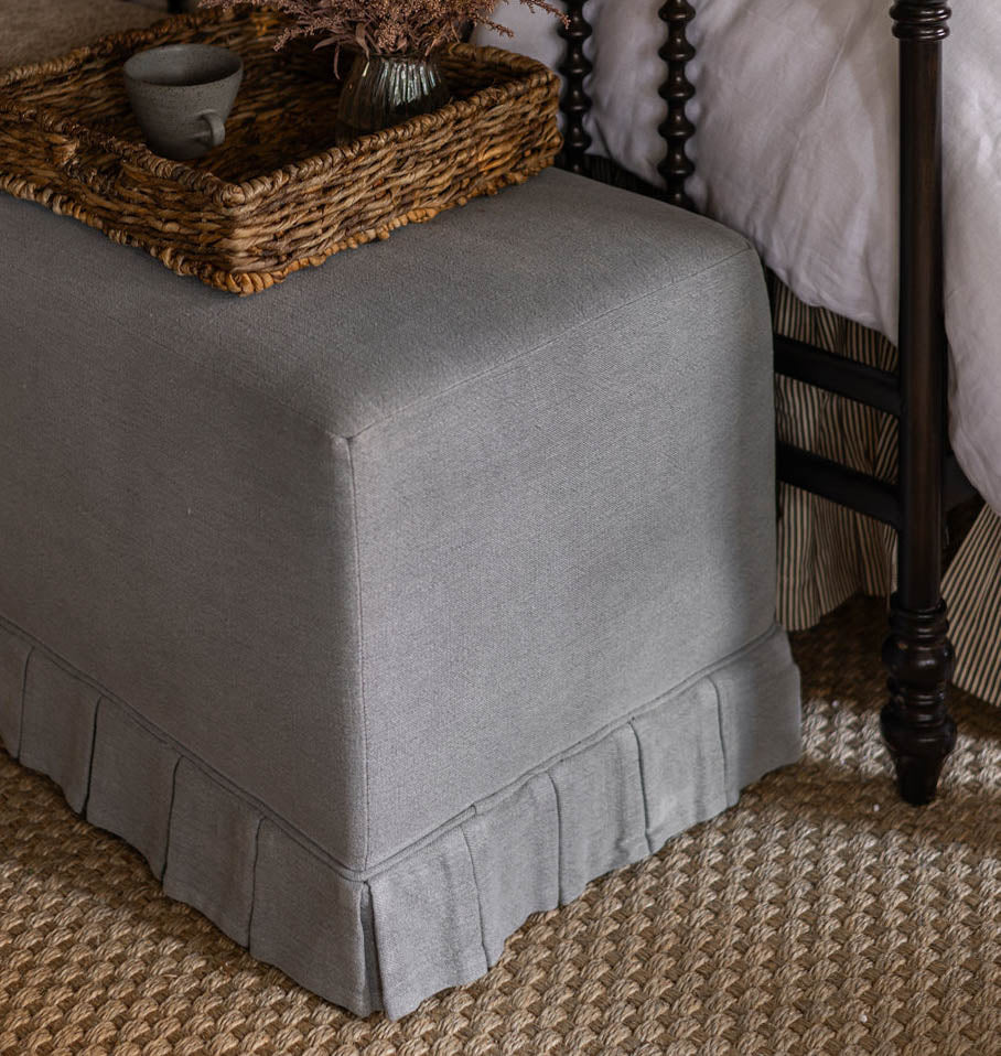 Anchored by an elegant skirt of classic welt-trimmed box pleats, simple lines keep the Leigh Bench stylishly understated. Ideal to use for additional seating, this bench is designed to fit in smaller spaces such as an entryway, dining room, or as an accent at the foot of a bed. This style is also available as a stool.