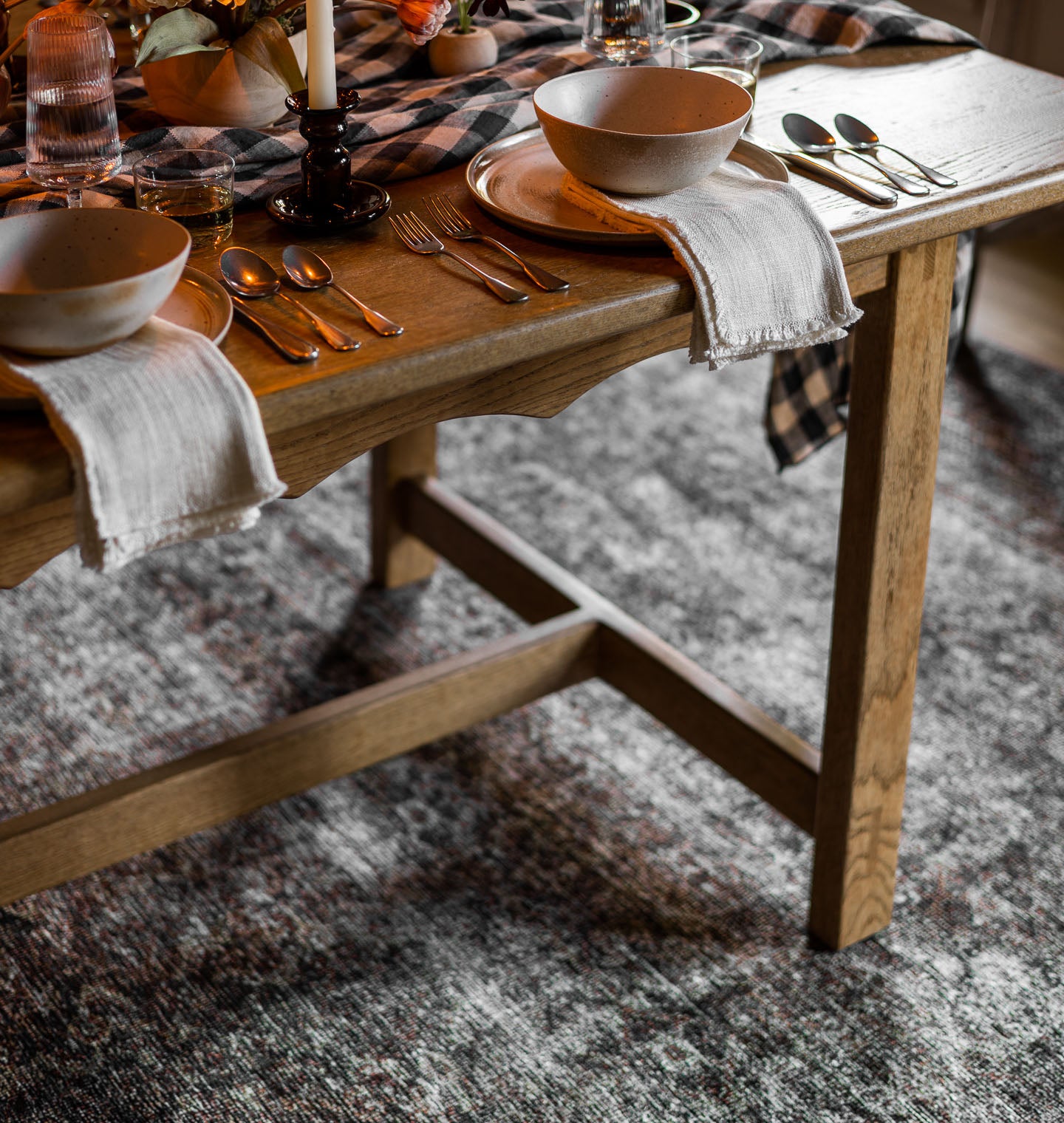 The Byrd Dining Table is made from solid red oak wood. Wood is an organic material with naturally occurring variations in tone and grain which enhance and highlight the nuanced qualities in our furniture pieces.