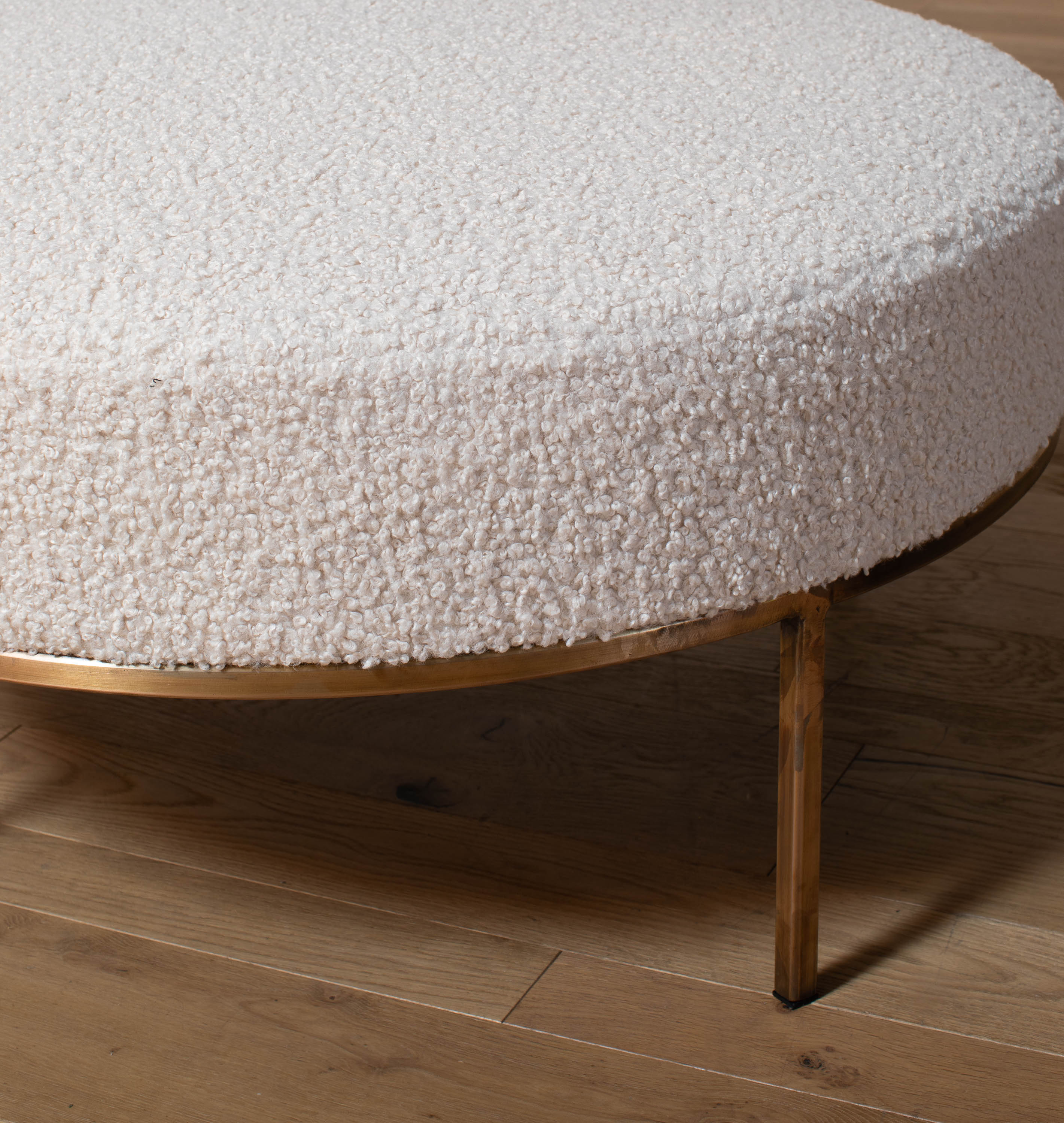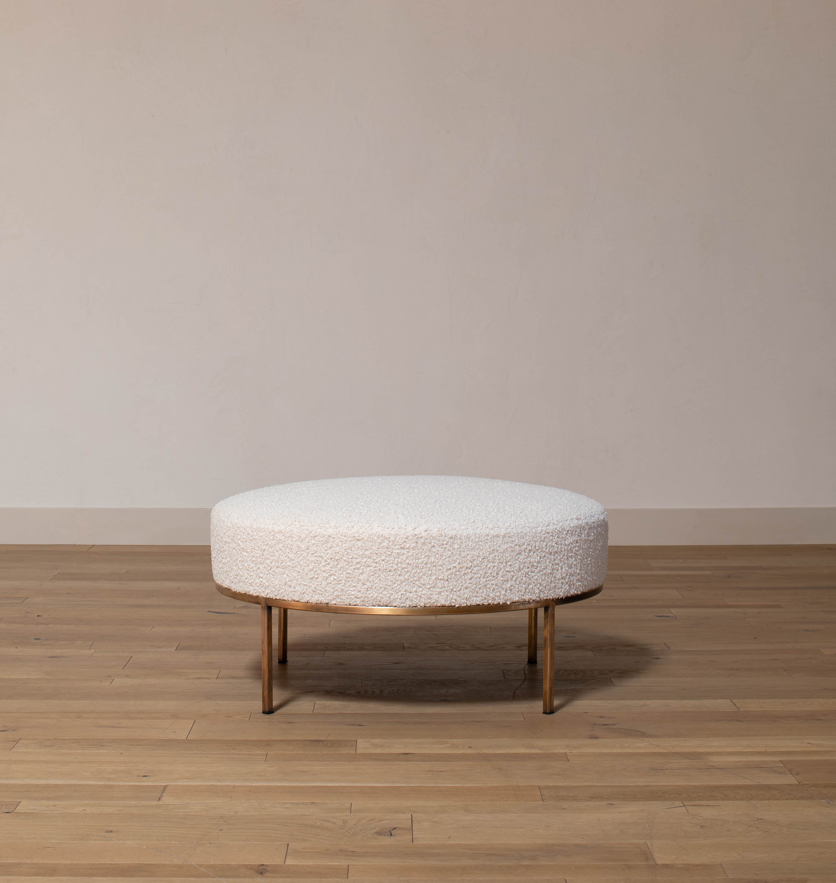 Designed to be a versatile complement to any living space, the Chautauqua Round Ottoman is a contemporary classic. The brass base is finished with a custom patina that will age beautifully and build character over time. We love to style the Chautauqua as extra seating, as a coffee table, or as an accent piece. This style is also available as a bench and an ottoman. Explore the Chautauqua Collection.