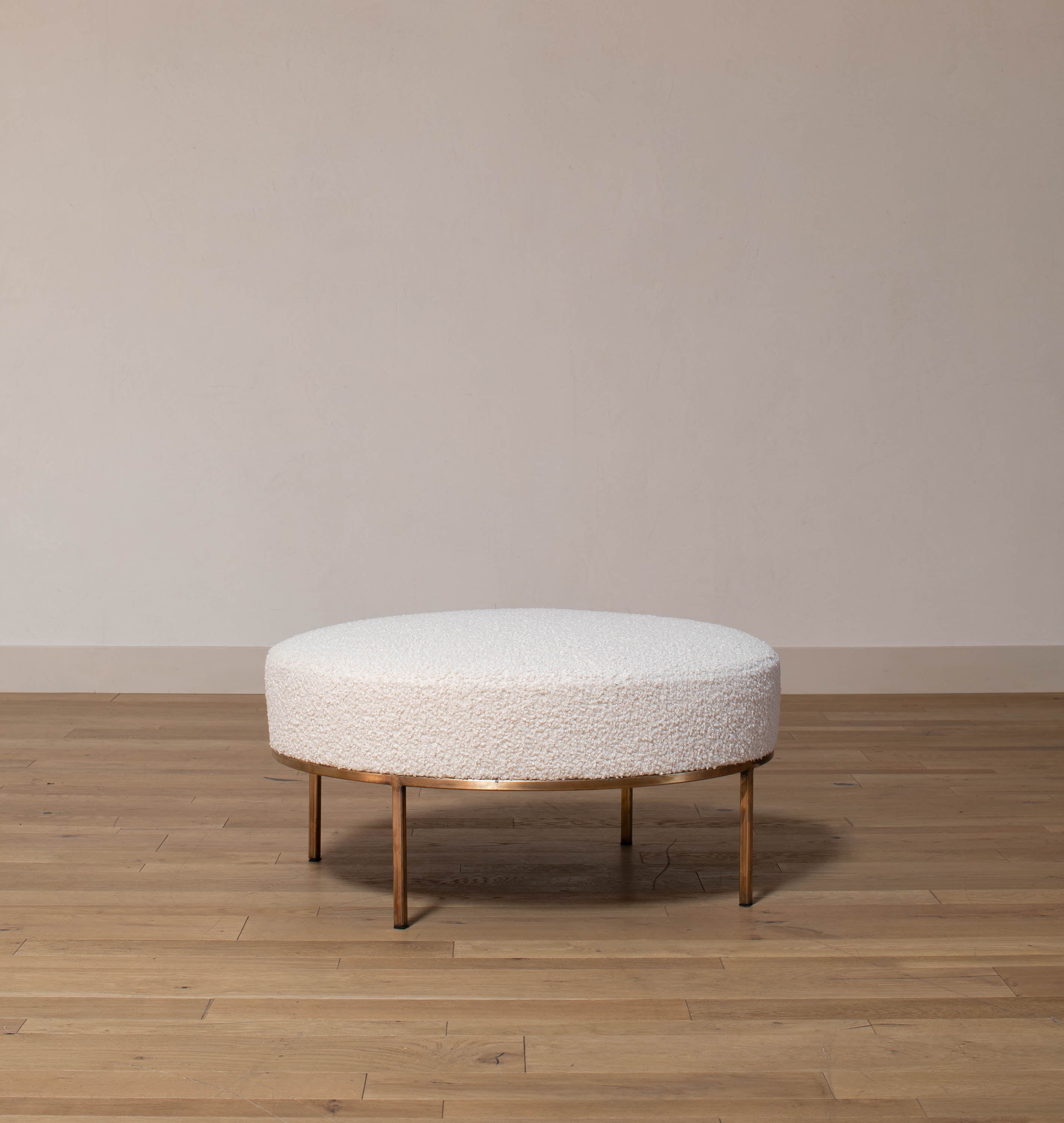 A versatile complement to any living space, the Chautauqua Round Ottoman is a contemporary classic that can be used for extra seating or styled as a coffee table.