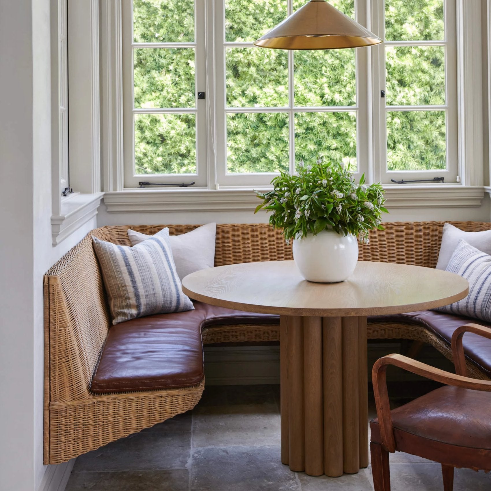 With a scalloped column table base, the Morgan Dining Table is a modern minimalist's dream. From gatherings big and small to casual work-from-home scenarios, it is an elegant piece that will grow with you throughout time. Made of solid oak, the table's finish highlights the natural grain and beauty of the wood. Due to the handmade construction and natural wood material, variations in color, texture and finish are to be expected and add to the unique character of each piece.