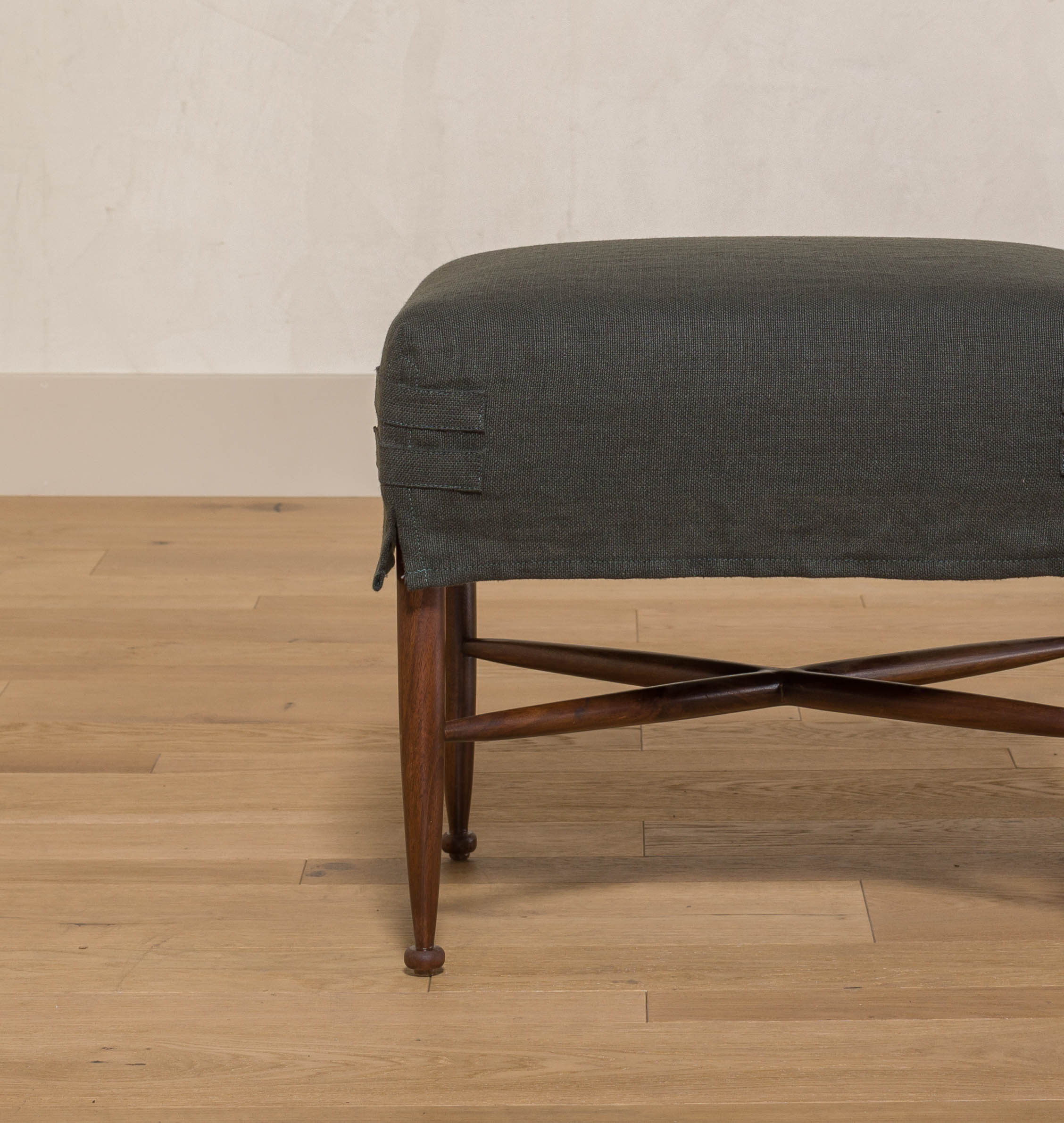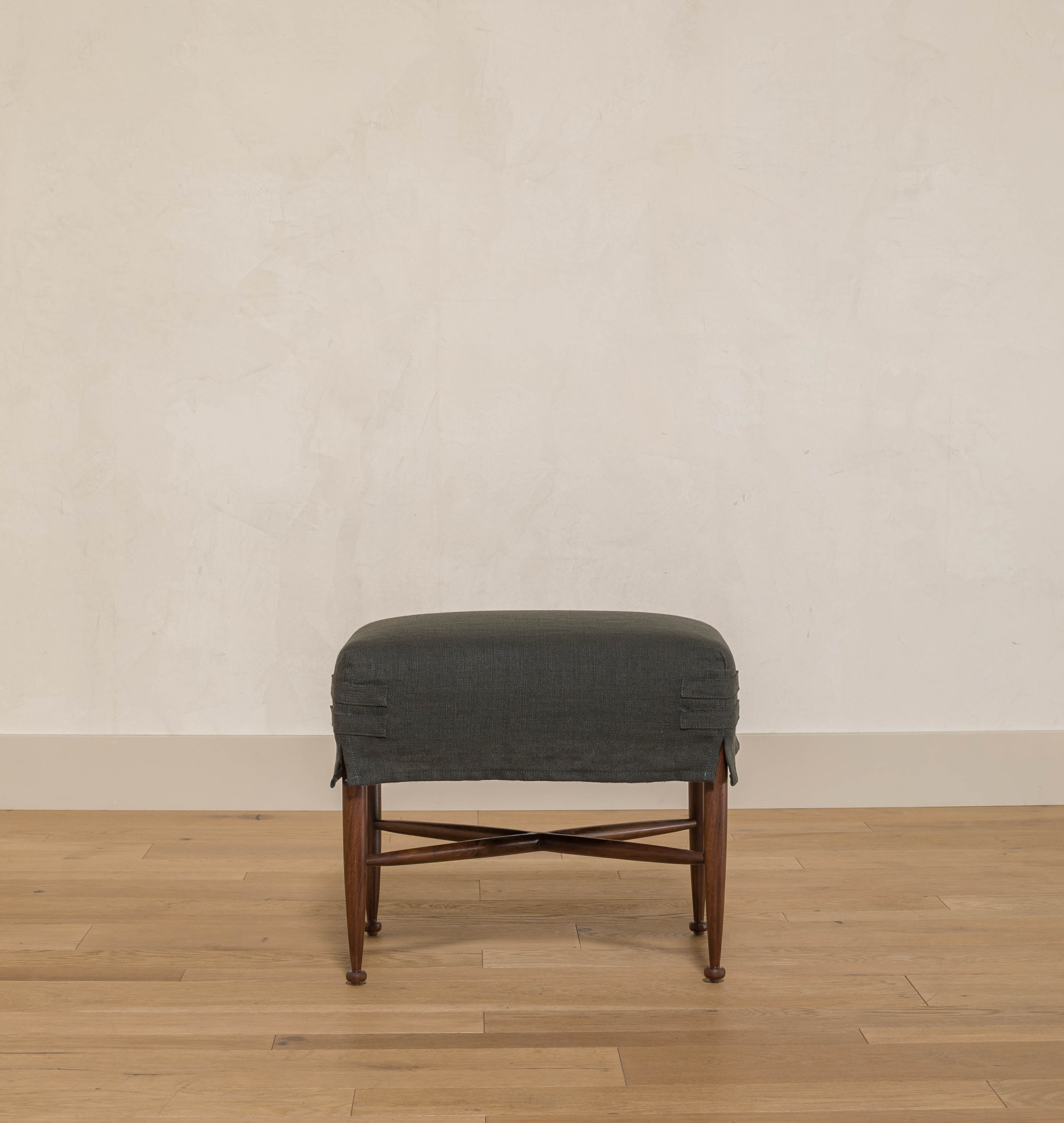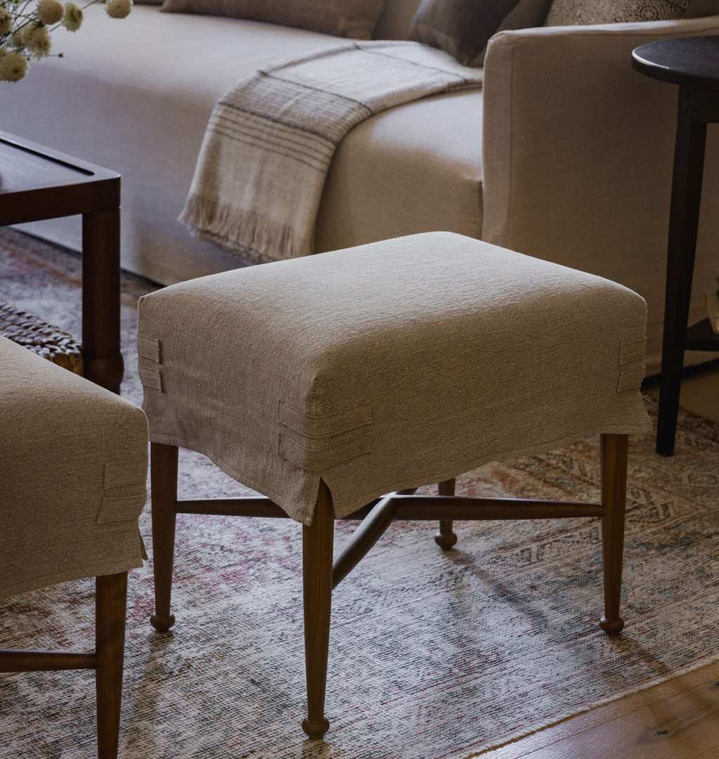 With tapered wood legs and carved ball feet, the Lauren Stool brings with it an elegant touch of vintage-modern style. A removable slipcover features a double patch detail and side slit at each corner—modern details that contrast beautifully with a traditional base. Place in your living room, entryway, or even at the foot of the bed for an impromptu seating option that never sacrifices on comfort or style. Explore the Lauren Collection.