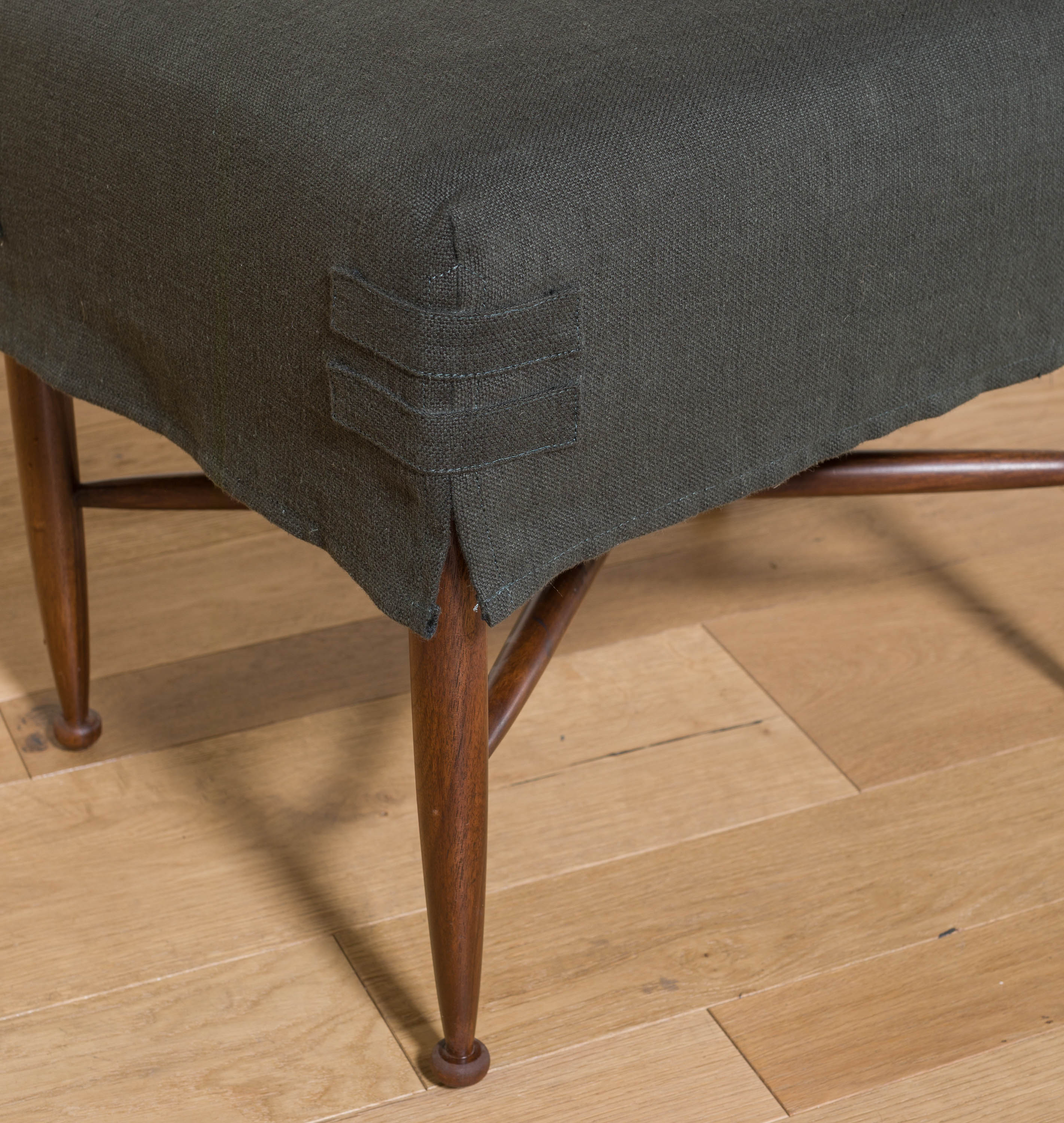 The Lauren Stool features walnut wood legs. Wood is an organic material with naturally occurring variations in tone and grain which enhance and highlight the nuanced qualities in our furniture pieces. Variances in finish coloring of up to 10% can be expected, adding to the beauty of your meticulously crafted, handmade piece.