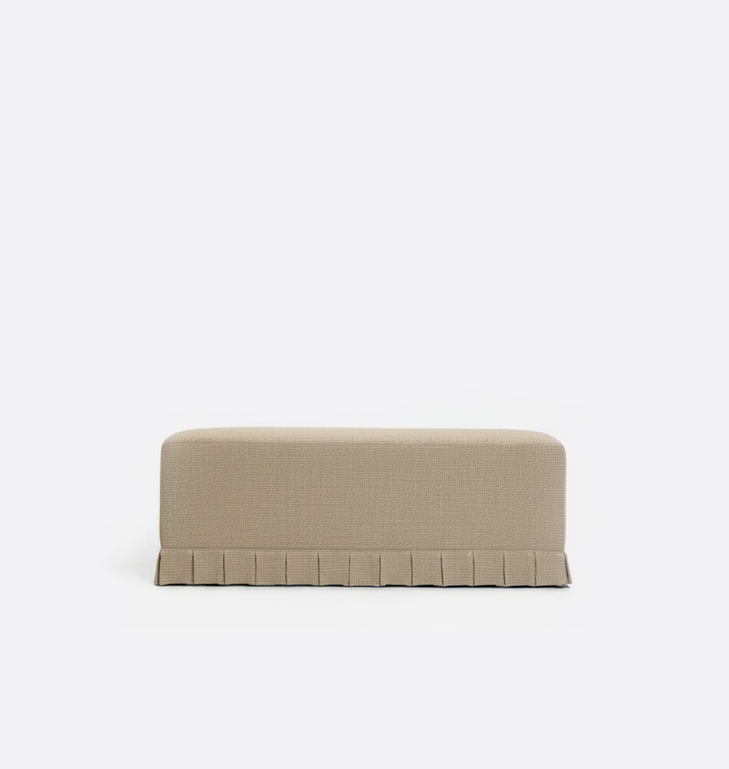 Anchored by an elegant skirt of classic welt-trimmed box pleats, simple lines keep the Leigh Bench stylishly understated. Ideal to use for additional seating, this bench is designed to fit in smaller spaces such as an entryway, dining room, or as an accent at the foot of a bed. This style is also available as a stool.