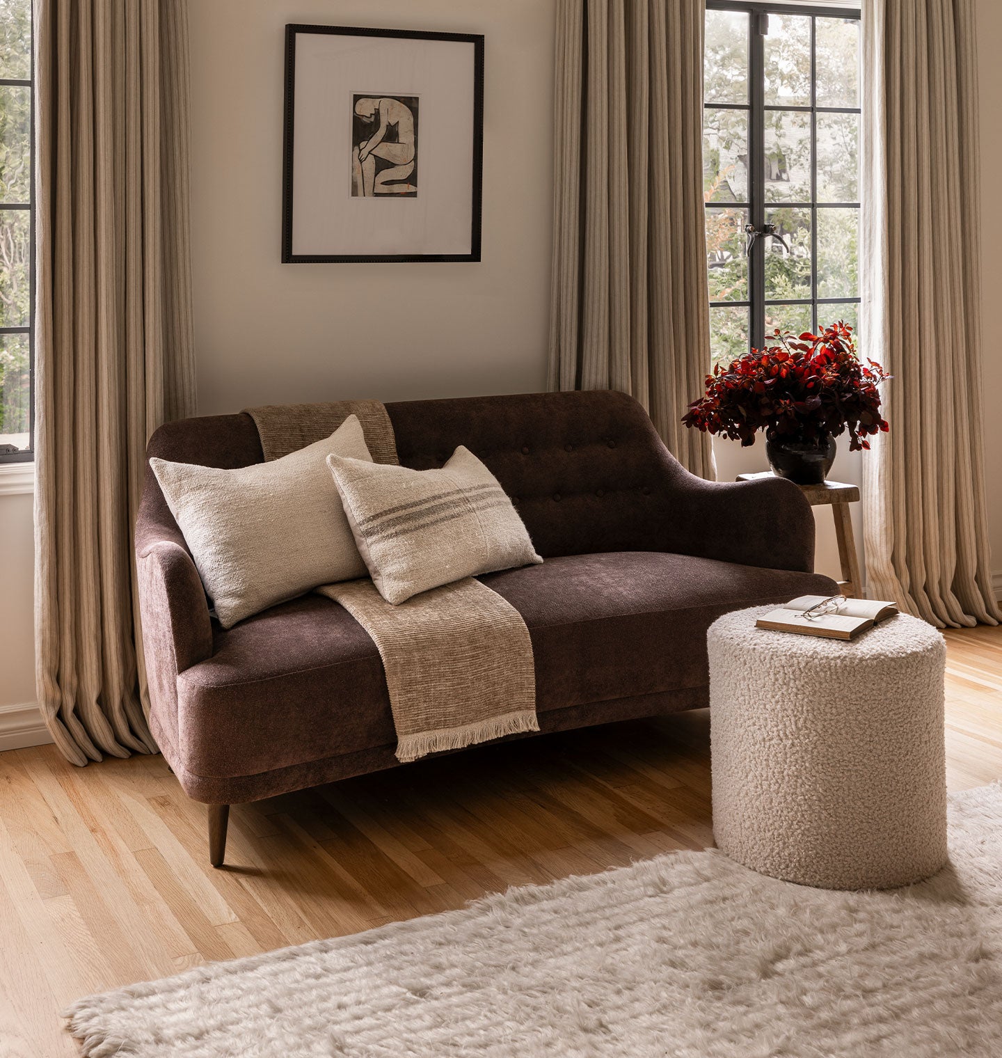 Designed by Amber Lewis, the Rui Settee is an exclusive design only available at Shoppe.