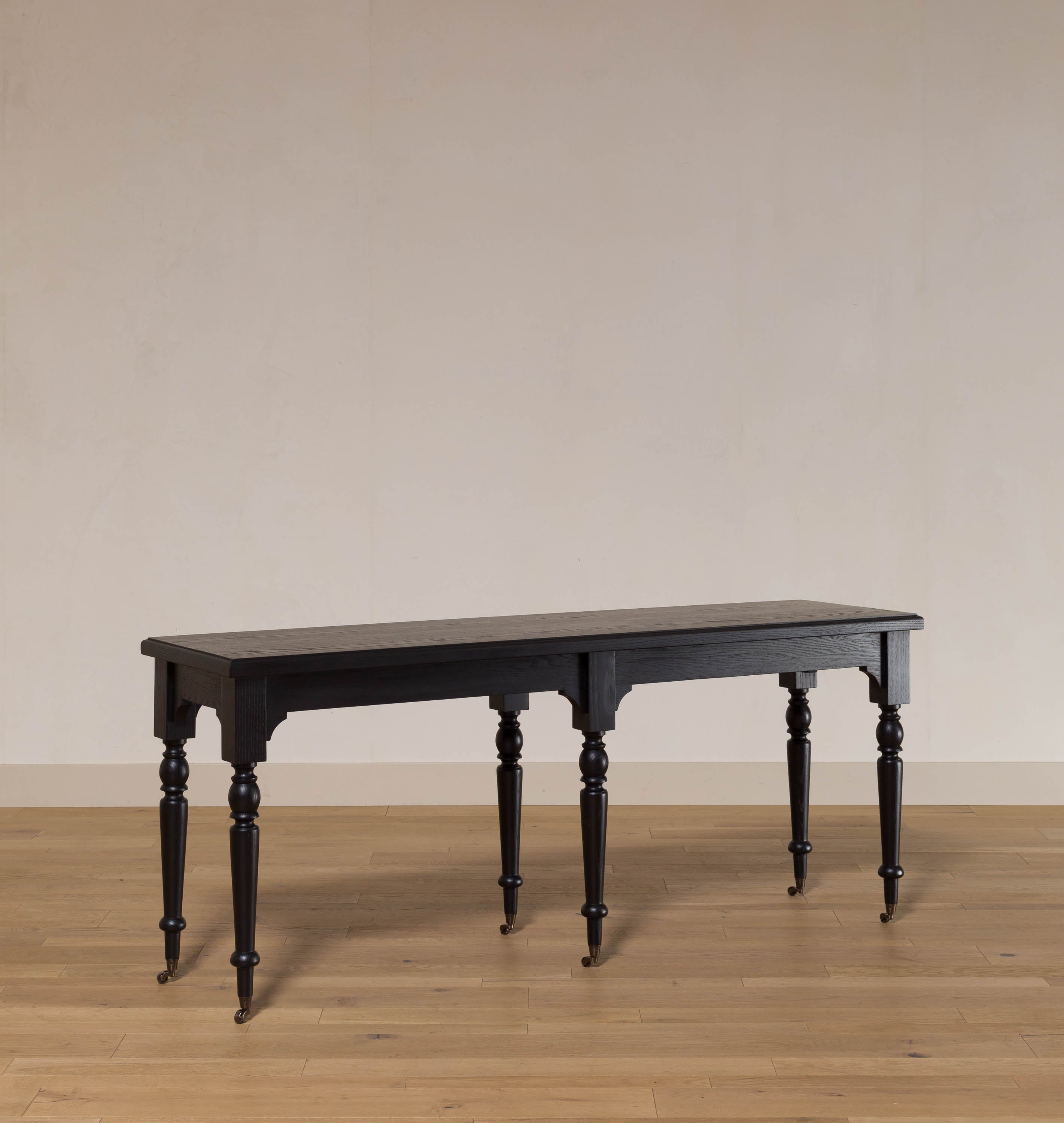 Steeped in tradition with a classic silhouette, the Lavi Console features a beveled edge tabletop and intricately carved legs that make it a standout accent for any space. With casters that allow for flexibility in placement, the Lavi serves as an eye-catching piece whether displayed in an entryway or behind a sofa. This style is also available as a dining table.
