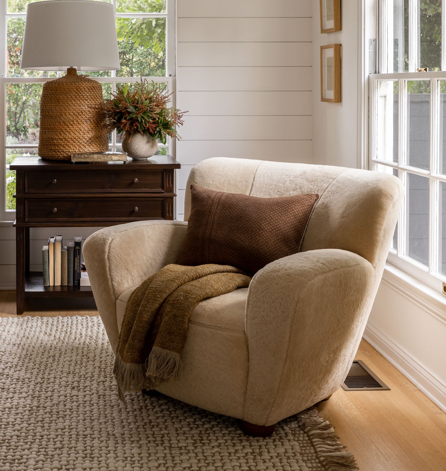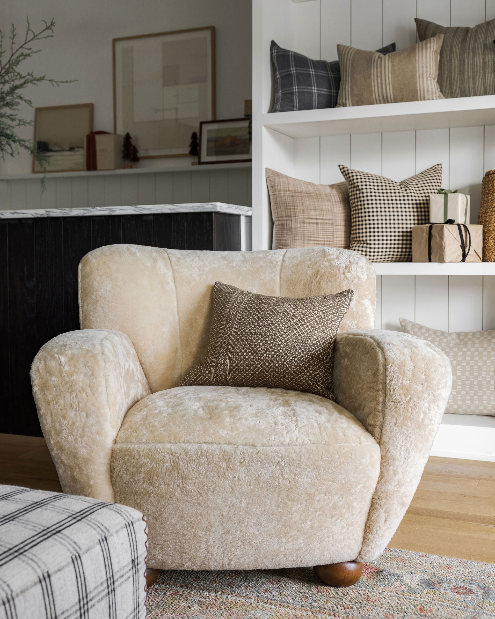 The Lewis Armchair is sure to be a modern icon within any home. With its sculptural form and elevated design, the Lewis is a stunning highlight for every space. With soft, angular lines reminiscent of vintage forms, its rounded feet add both height and an air of approachable sophistication. We love to style it with a vintage pillow and soft throw blanket to complete the look.